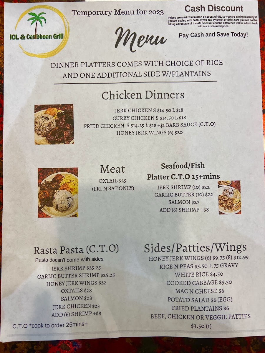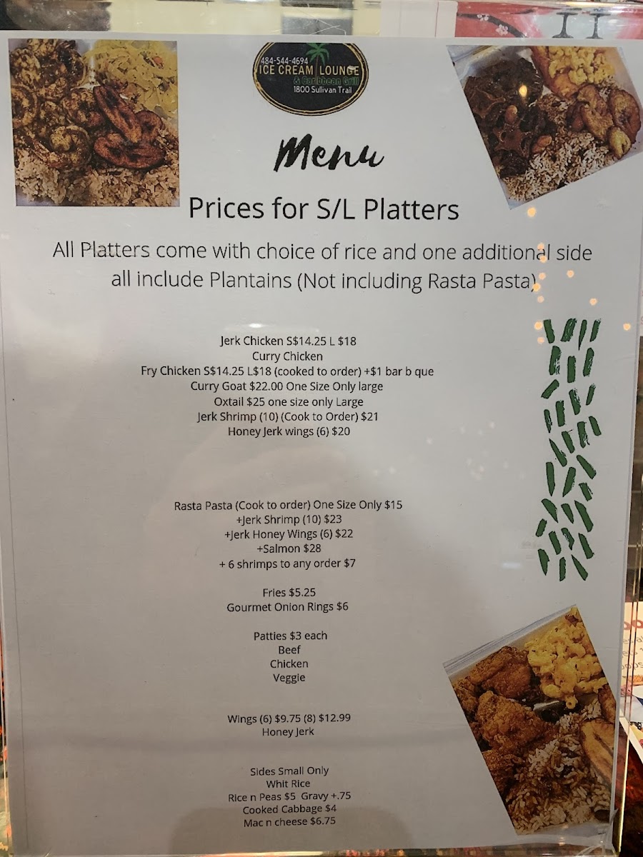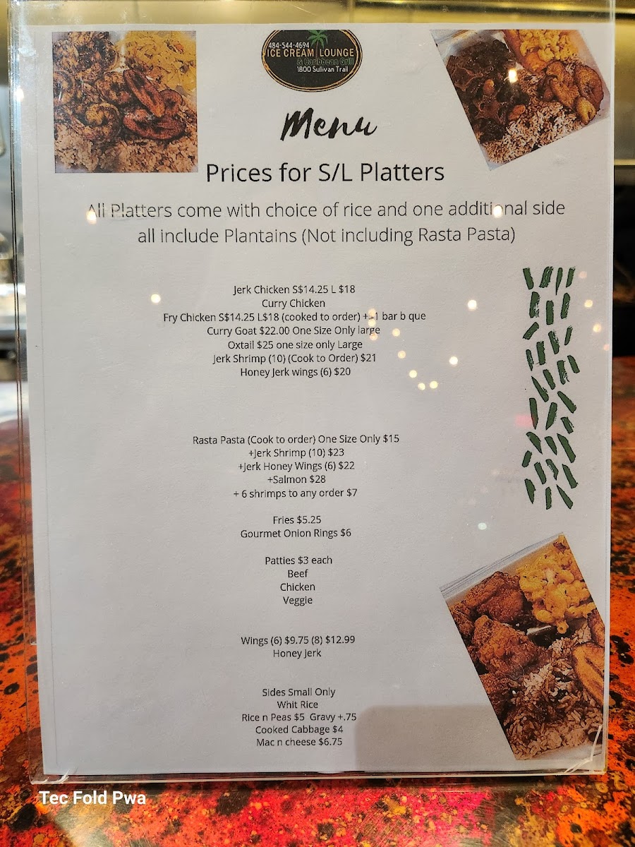 Overall, the menu at Ice Cream Lounge delivers a flavorful Caribbean-inspired experience with a concise yet satisfying selection of hearty options. The Large Dish offerings stand out, featuring favorites like Jerk Chicken, Oxtail, and Curry Chicken, alongside comforting classics such as Stew Chicken and the indulgent Rasta Pasta w/Jerk Shrimp. While specific prices aren’t listed, the variety within this category suggests a focus on generous portions and bold, authentic flavors. From a reviewer’s perspective, the menu strikes a nice balance between traditional staples and slightly elevated dishes, making it appealing for both newcomers and those already familiar with Caribbean cuisine.
